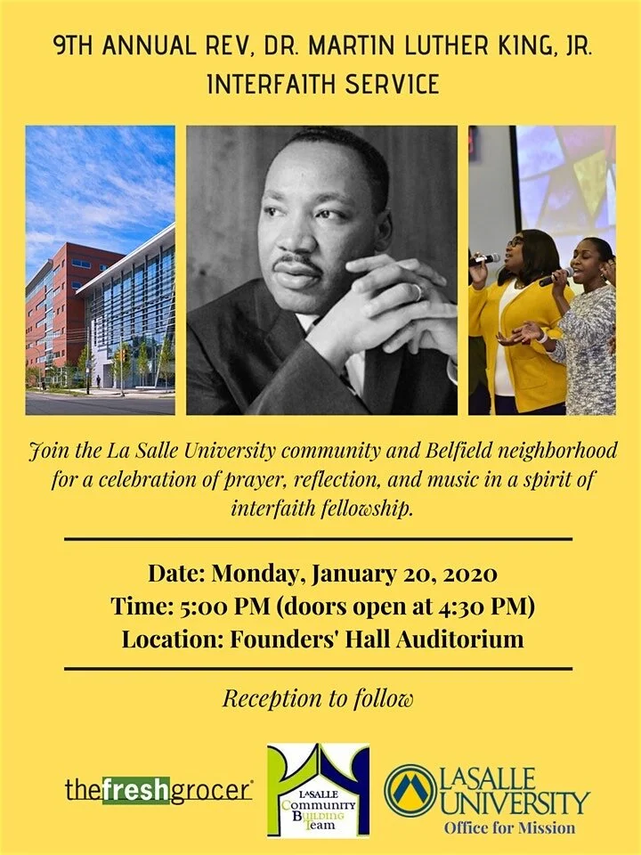Join the La Salle University Community and Belfield neighborhood for a celebration of prayer, reflection, and music in a spirit of interfaith fellowship. Following the service, The Smooth Show will be providing the live music entertainment for the reception - starting at approximately 6:15pm. This event is free to the public; feel free to learn more and register HERE.